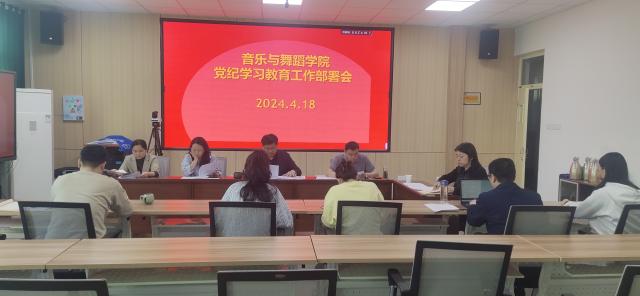 4月18日上午,音乐与舞蹈学院召开党委扩大会议,启动党纪学习教育。会议学习传达了党中央关于开展党纪学习教育部署要求、省委工作安排和学校党委《关于在全校开展党纪学习教育的实施方案》及相关要求,审议通过了《音乐与舞蹈学院党纪学习教育工作任务分工安排》,院党委书记宗传军主持会议,党委班子成员、科级以上干部以及各党支部书记参加会议。