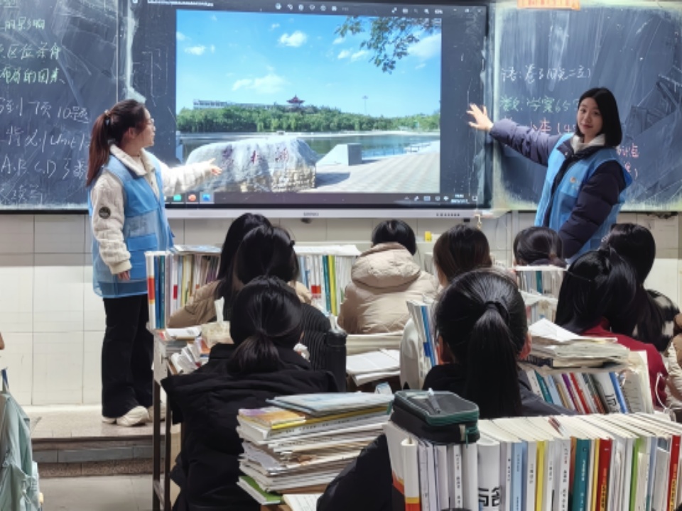 本次活动围绕校园展示、普法宣讲、总结展望三个环节展开,助力高中生深入了解大学生活与法学专业知识,于其心中种下追逐梦想、探索知识的种子。活动过程中,高中教师带领志愿者参观校园,校园基础设施优化完善,学风学术成绩显著,充分彰显母校的蓬勃发展态势。随后,志愿者进入学生教室,通过图文结合的方式向高中生充分展现聊城大学深厚的文化底蕴与浓厚的学术氛围,激发高中生对聊城大学的憧憬之情,明确未来的奋斗目标。同时,志愿者结合自身专业特色开展民法典宣讲活动,通过案例分析、法律解读和互动问答等方式,运用专业知识和实践经验,深入浅出地讲解民法典与日常生活的紧密联系,促进高中学子深刻认识到民法典的重要性。总结展望环节,志愿者向即将参加高考的学子送上真挚的祝福,鼓励在场学生报考聊城大学,期待高考学子在聊城大学逐梦追法、探索未知。