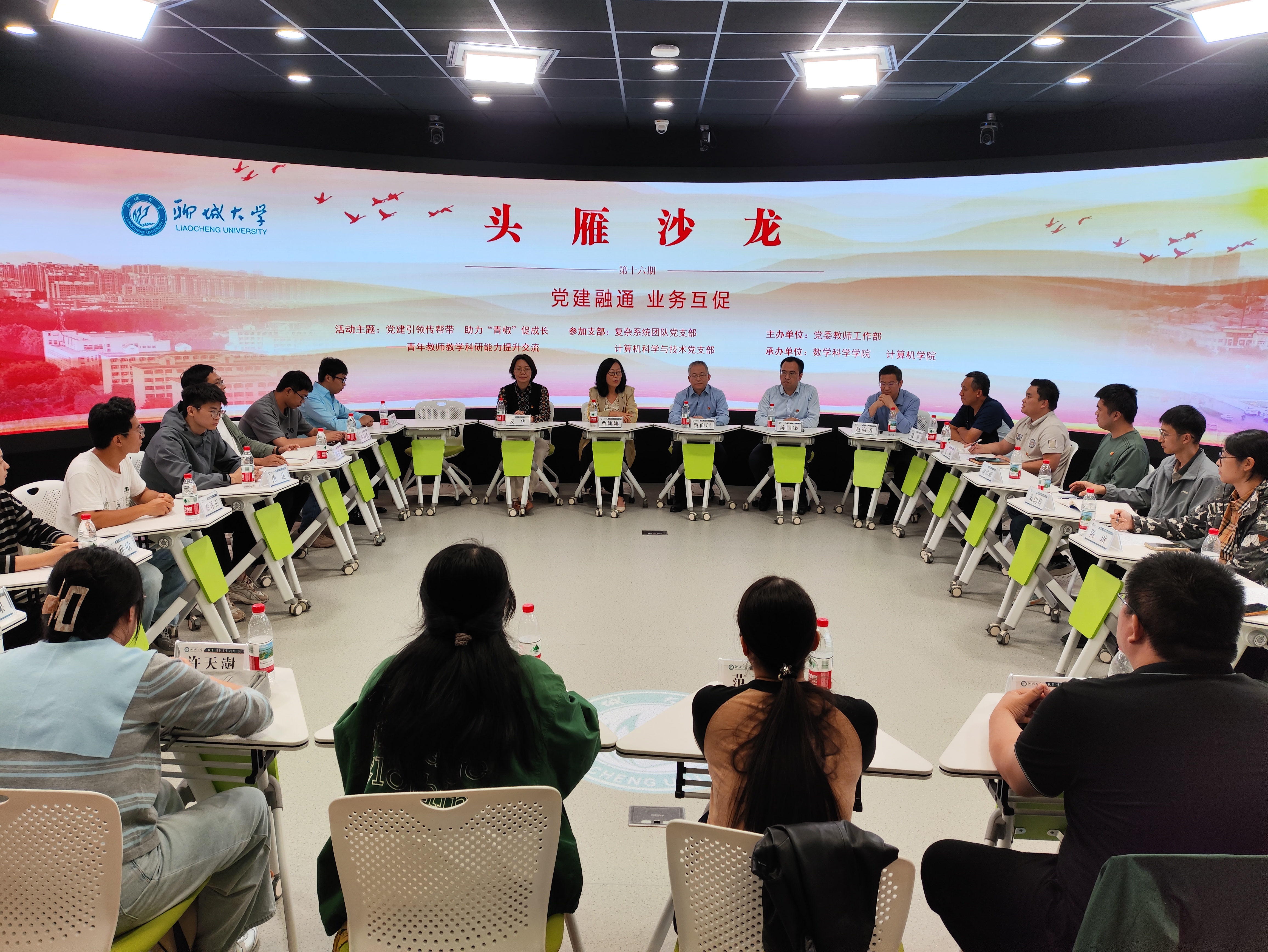 9月25日下午,聊城大学第十六期“头雁沙龙”在东校区4#C103全景教室成功举办。本次活动以“党建引领传帮带 助力‘青椒’促成长——青年教师教学科研能力提升交流”为主题,由数学科学学院复杂系统团队党支部和计算机学院计算机科学与技术党支部联合承办。学院党委主要负责同志和青年教师代表参加了活动,计算机学院副院长贾保先主持沙龙。