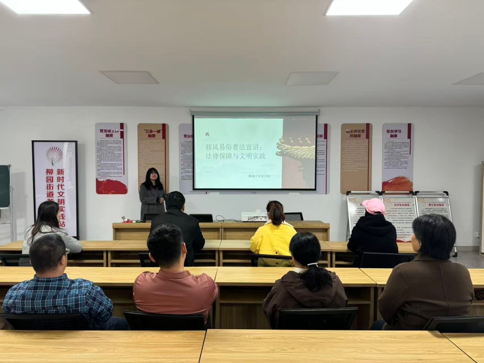 本次活动聚焦“天价彩礼”的现实问题,依托法学院的专业优势以宣讲形式展开。活动过程中,志愿者通过由浅入深的方式以彩礼问题引出移风易俗的核心主题,详细讲解移风易俗的内涵、移风易俗的目的、保障文明新风落地的相关法律法规,引导居民积极投身文明新风建设。此外,志愿者重点强调移风易俗实践路径与方法,个人婚丧嫁娶、日常交往礼仪、文明生活方式要进行革新。在社会协同共治机制层面上,鼓励更多社会组织开展移风易俗宣传教育活动,利用短视频、公众号等新媒体平台宣传文明新风和法律知识。在互动交流环节,志愿者耐心回答居民疑问,将对“反对陈规陋习”的文明理念认同转化为社区居民的行动自觉。