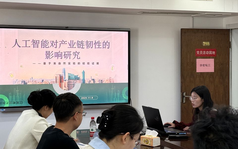 《人工智能对制造业企业绿色转型的影响——基于新一代人工智能创新发展试验区的准自然实验》、《人工智能对产业链韧性的影响研究——基于准自然实验的经验证据》的入选与汇报,充分体现了我校师生扎实的科研素养与良好的学术风貌,对我院学子进一步提升科学研究水平奠定了良好基础。